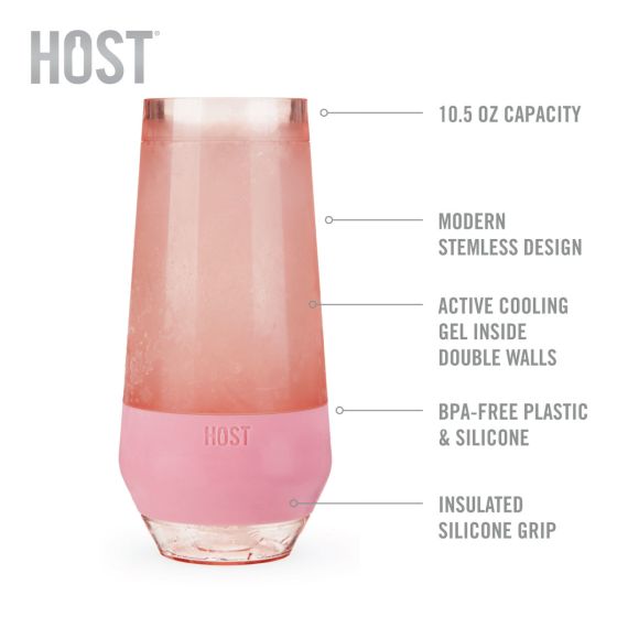 Finally, a FREEZE cup for your bubbly: the Champagne FREEZE. With a double walled construction filled with active cooling gel, a silicone band for comfortable handling, and a 10.5 oz. capacity, the Champagne FREEZE is ready to keep your sparkling wine chilled for as long as it takes you to finish it. 10.5 oz. capacity BPA-free plastic, silicone, active cooling gel Hand wash only For the best results, place the Champagne FREEZE upside down in the freezer to allow the gel to evenly spread and freeze.
