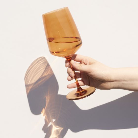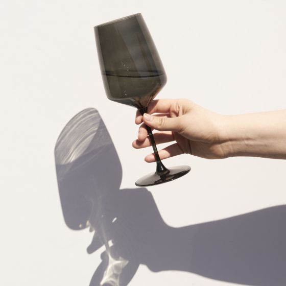 Enjoy your wine in gorgeous multi-colored wine glasses. Crafted from European crystal, these stemmed wine glasses have a modern, angled silhouette with elegant stems and come in four striking hues: Smoke, Garnet, Berry, and Amber.
