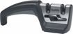 The Deluxe Pull-Thru knife and Scissor sharpener feature coarse and fine sharpening slots. The Coarse slot includes preset carbide blades set at 35 degrees combined angles to quickly sharpen European / American style straight-edge knives. The fine slot’s triangular-shaped ceramic stones sharpen at 37 degrees combined and are perfect for finishing the edge of the knife and for every day honing. These triangular shaped ceramic stones are ideal for sharpening serrated knives. This versatile sharpener’s patented scissor sharpener works on both right and left-handed scissors featuring floating ceramic rods.