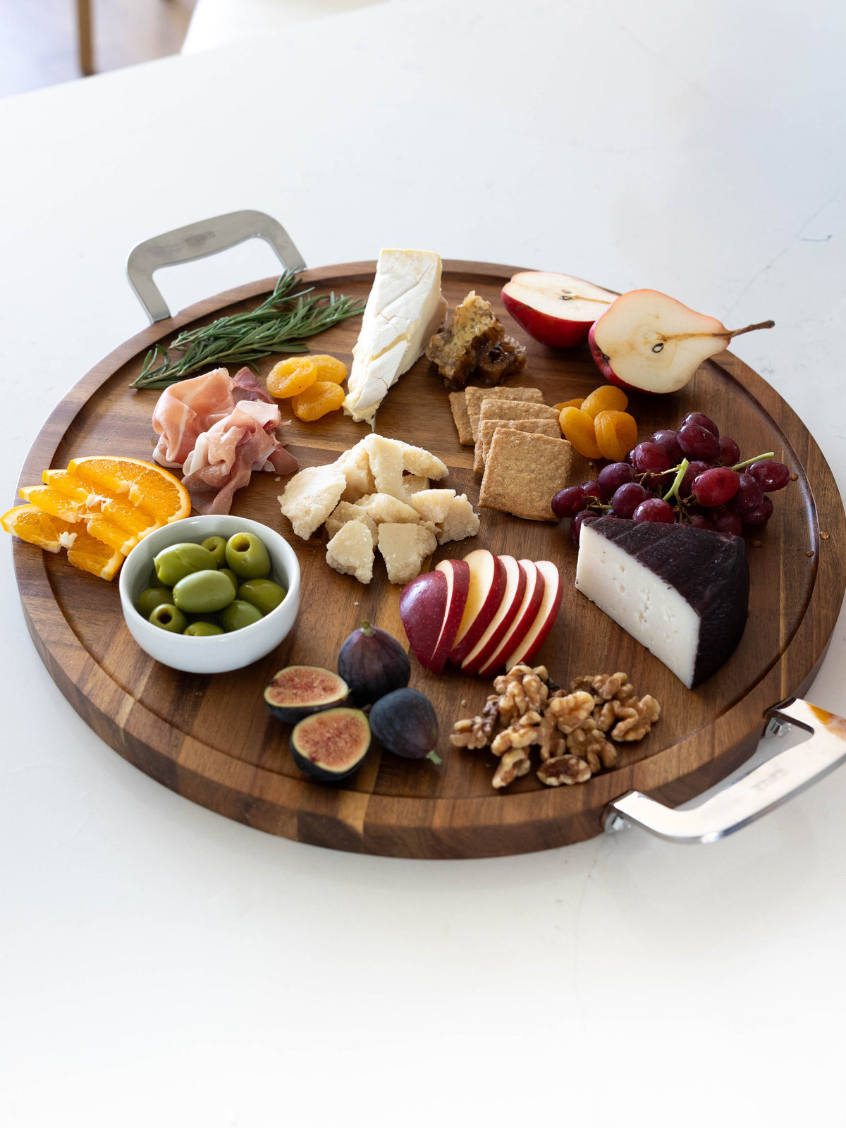 Dexas Acacia Wood Serving & Entertaining Board with Stainless Steel Handles
