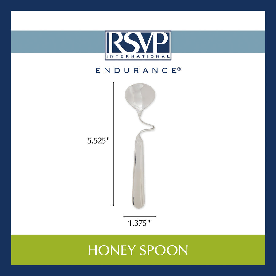 • This unique spoon balances on the edge of a honey jar, tea cup, or mug.